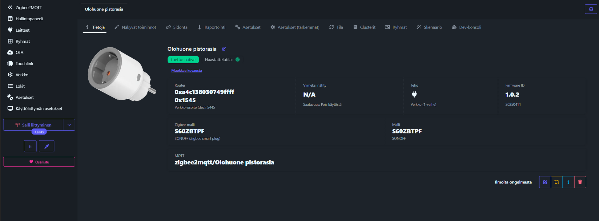 - Malli: Sonoff iPlug S60ZBTPF